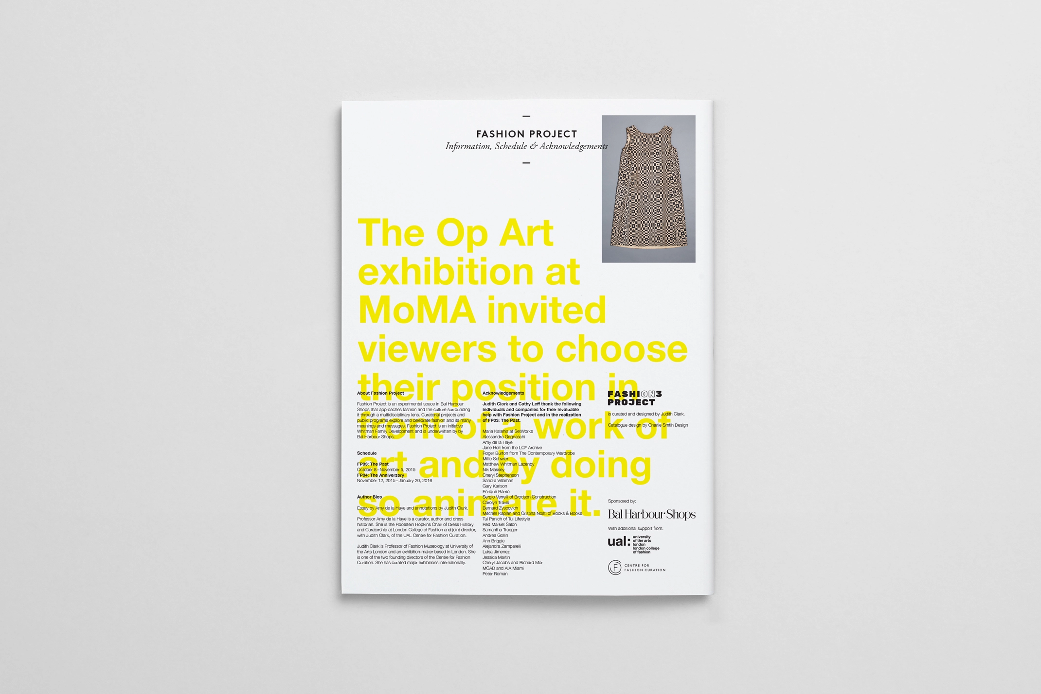 Bal Harbour Shops is a luxury retail destination in Miami, Florida. At the heart of the shopping destination is the Fashion Project – an experimental space that approaches fashion and the culture surrounding it through a multidisciplinary lens. Working closely with curator Judith Clark we were commissioned to design the exhibition graphics and catalogue for the inaugural series of four exhibitions.