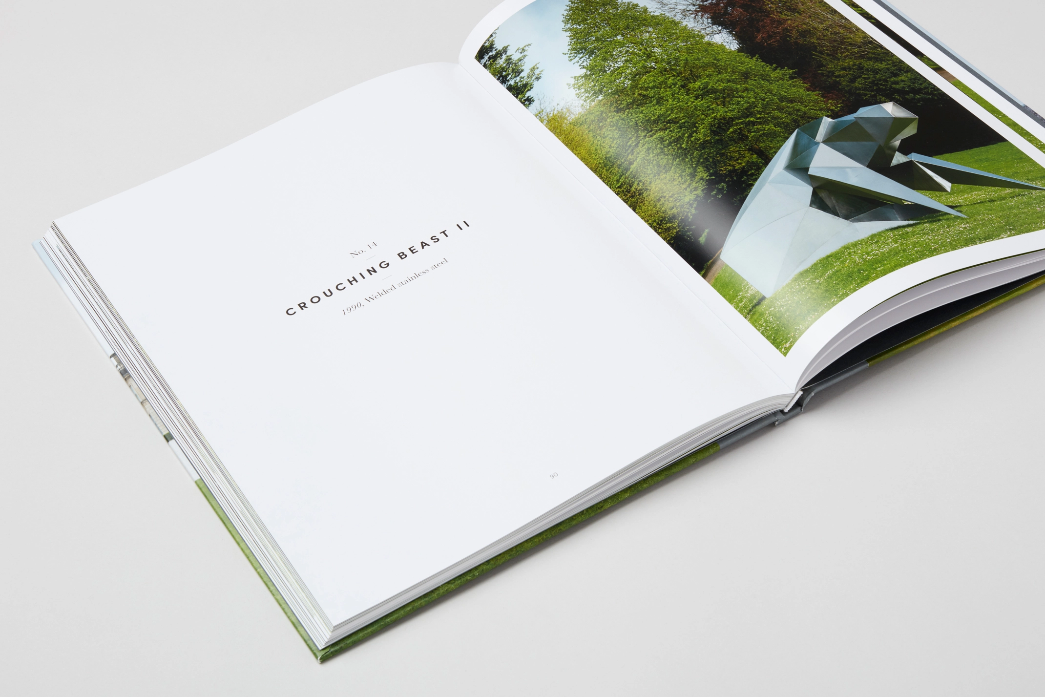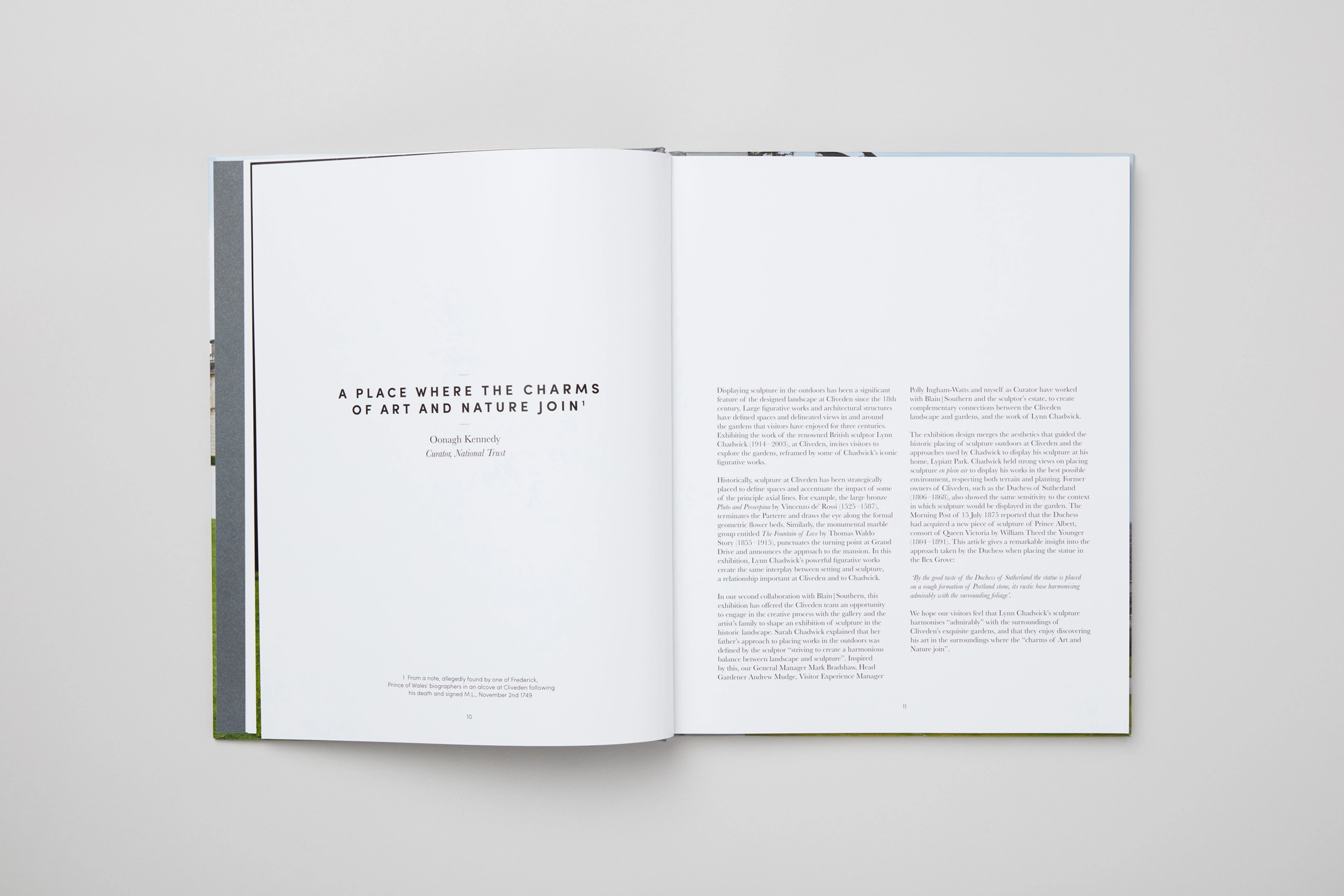 A paired-back typographic treatment was used to introduce the essays and sculptures, allowing Jonty Wilde’s photography to take prominence throughout. The catalogue is interspersed with full-bleed imagery on double page spreads and bound with an embossed stock that echoes the hue of the roman cement render of Cliveden House.
