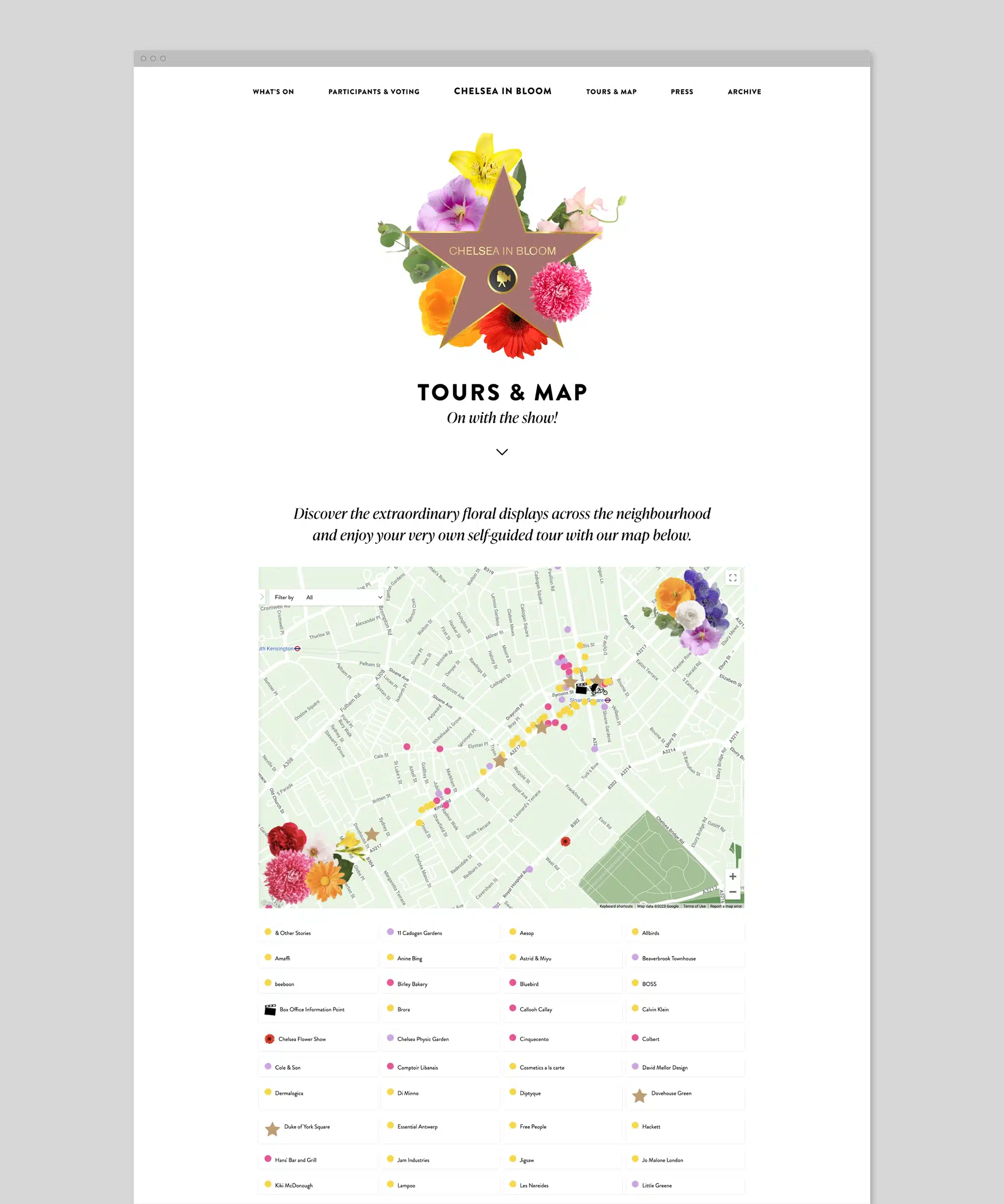 The website attracted over 87,000 unique visitors over the one week period leading up to Chelsea in Bloom, with nearly 165,000 visits in total. This was significantly more than the usual number of users.