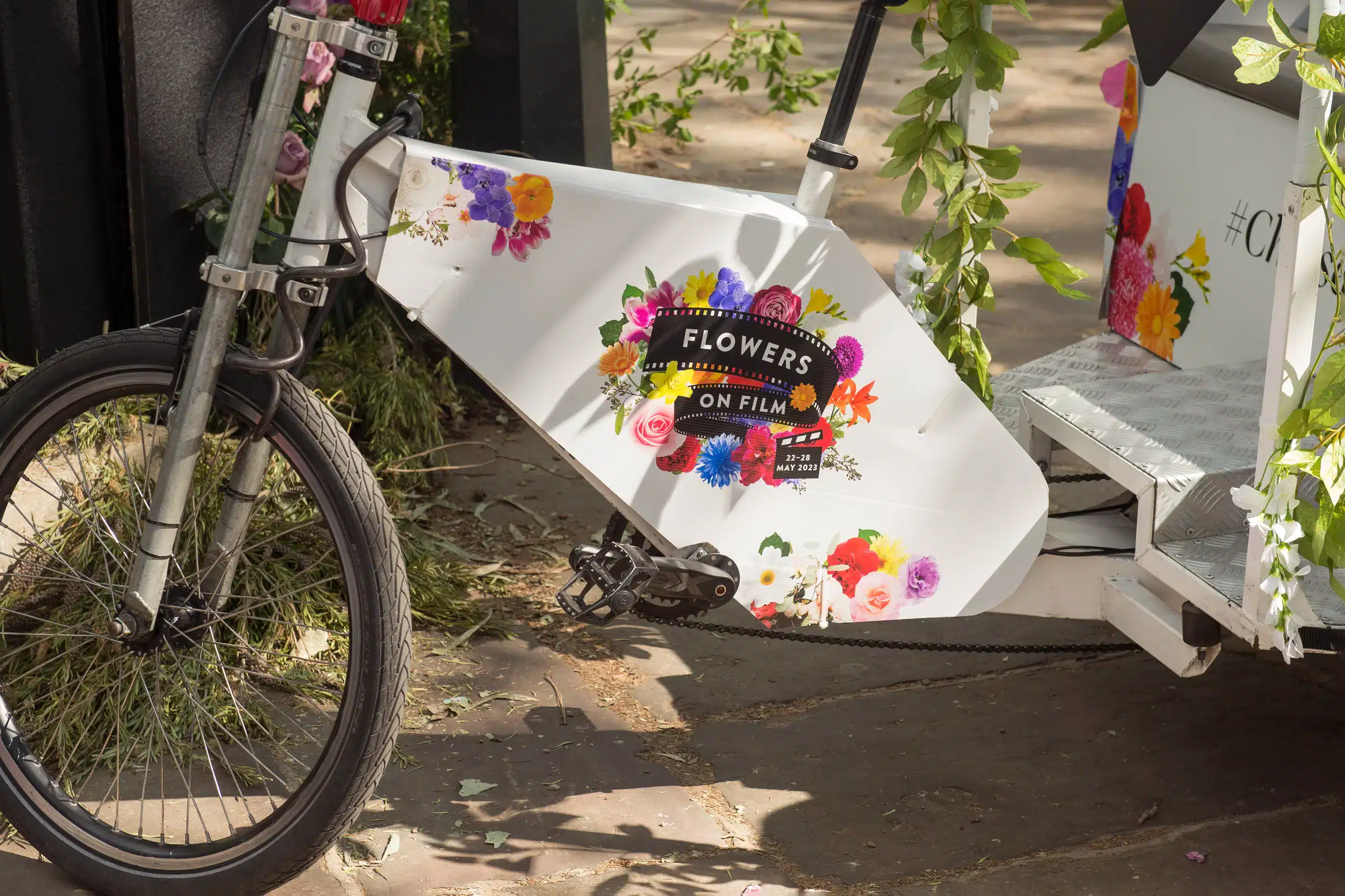 Using the theme as the starting point, we created a logo that combines flowers around a central film reel motif. The identity was successfully rolled out across their website, social media, window vinyls, posters and on rickshaws that offer tours of the displays.