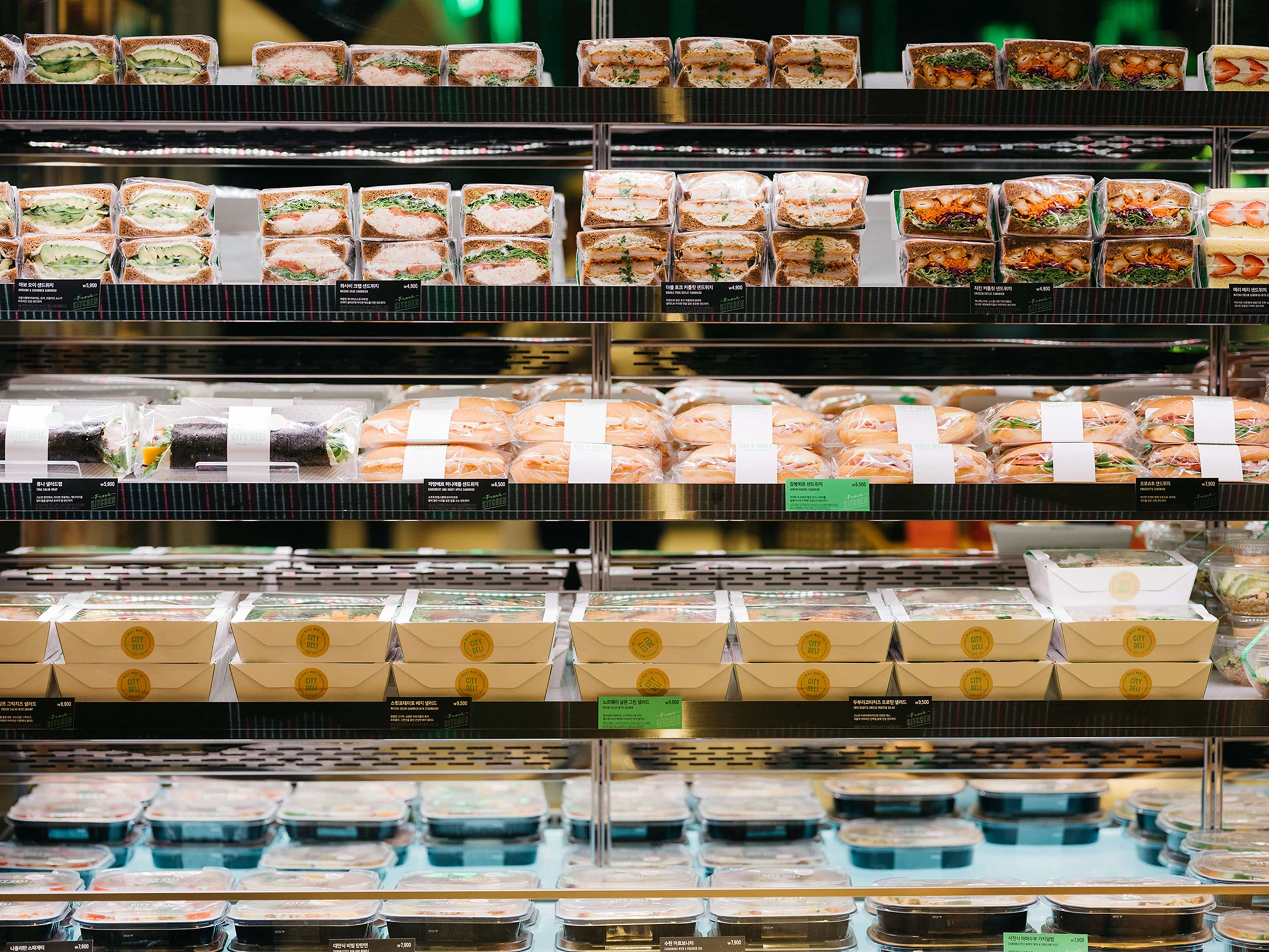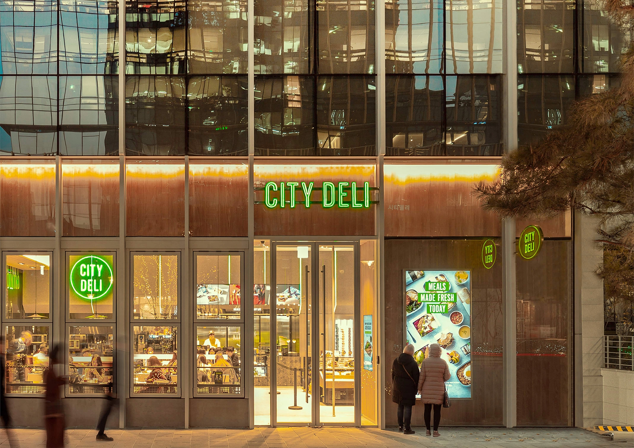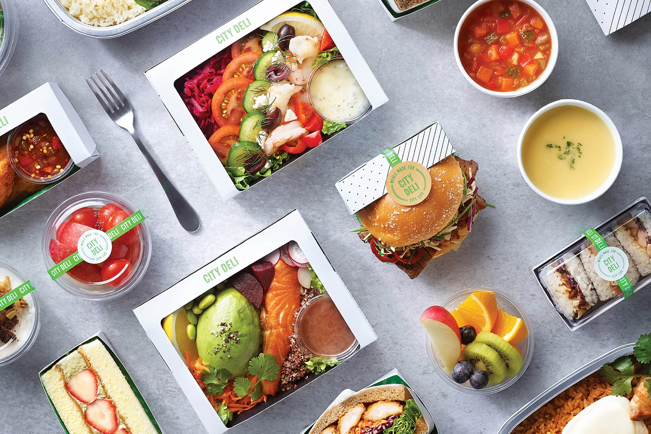 We worked with South Korea based SPC Samlip to develop the brand identity for their new hybrid-style cafe and convenience store, City Deli. SPC wanted the brand to celebrate the urban locations that the stores would inhabit whilst referencing the fresh food it would serve.