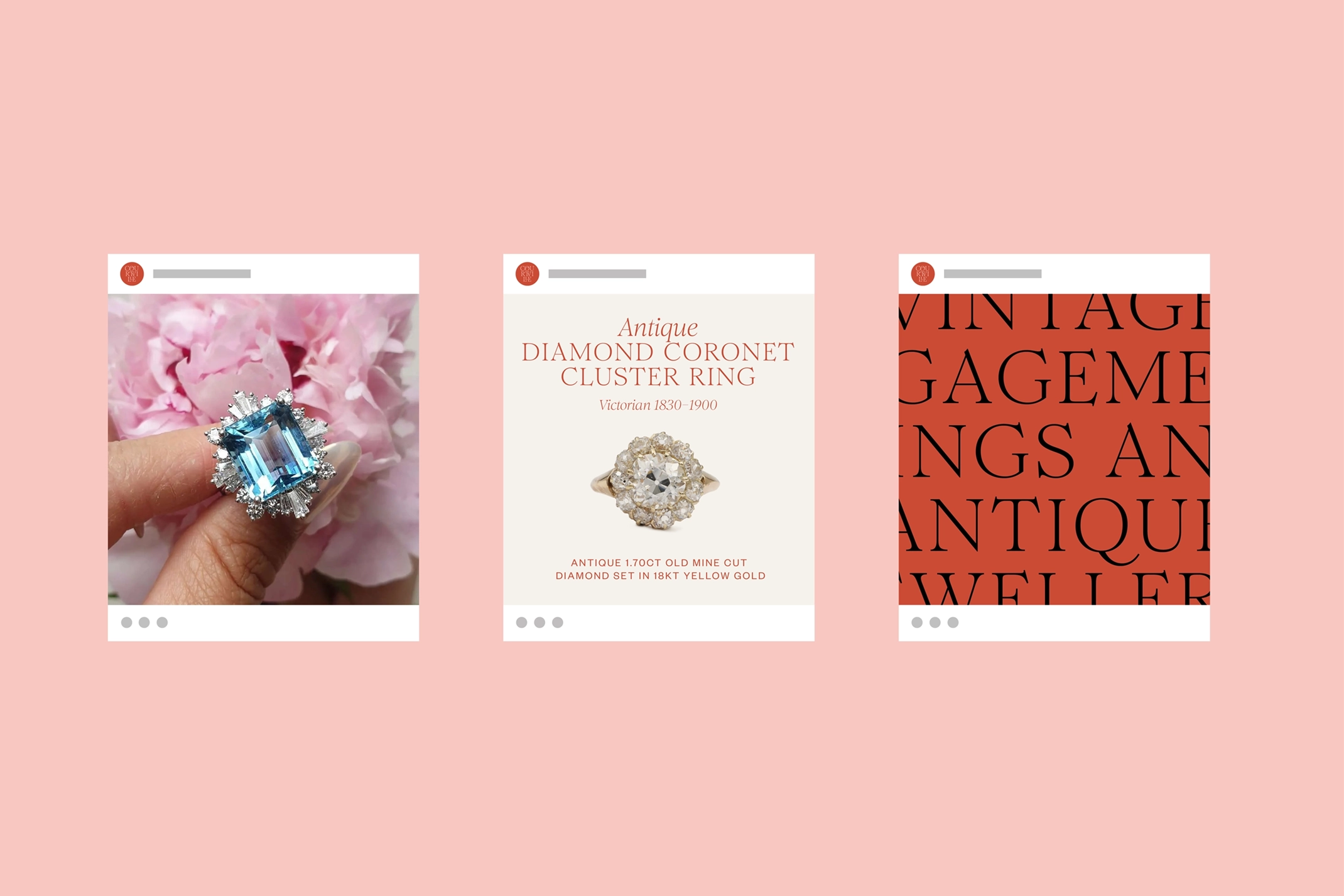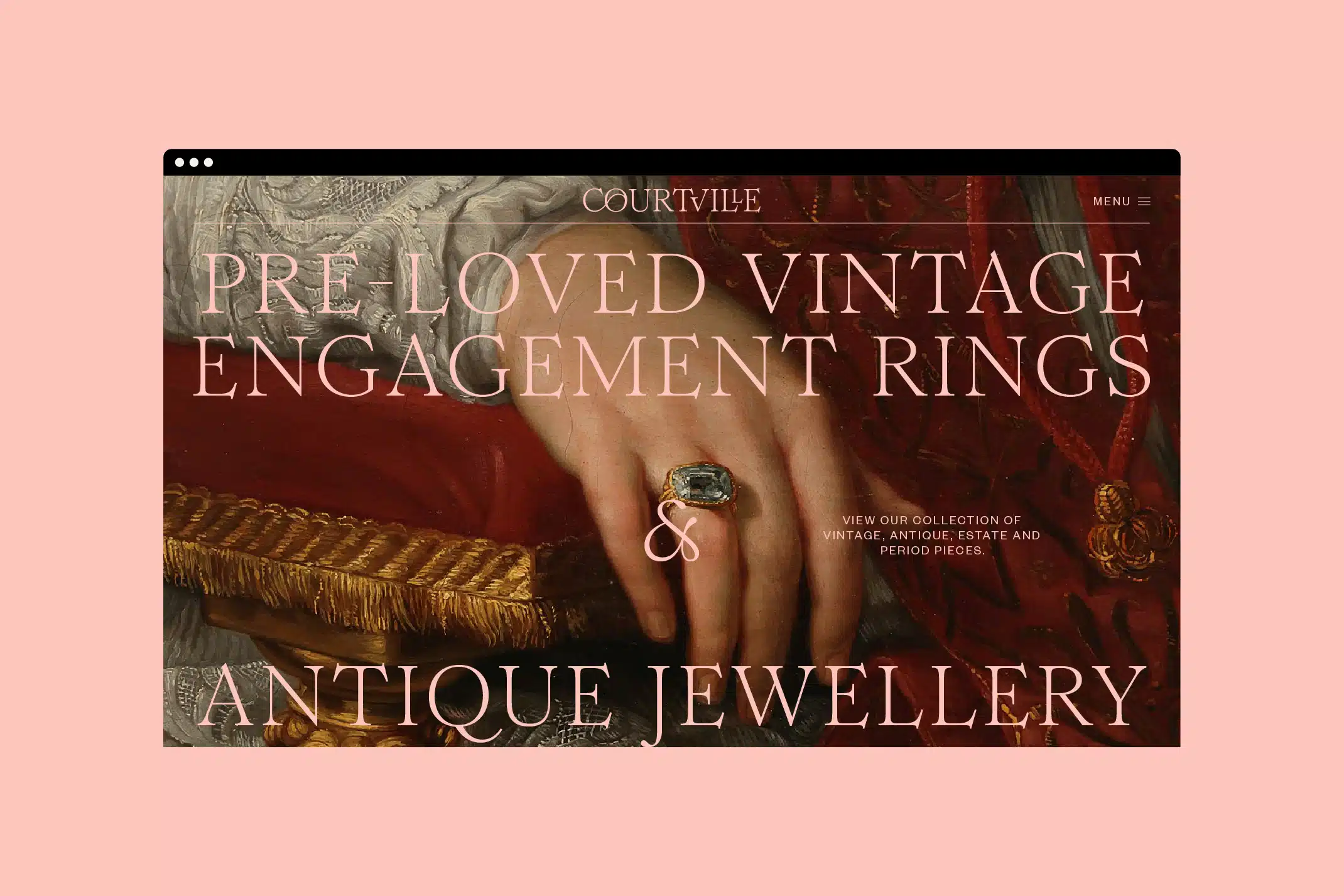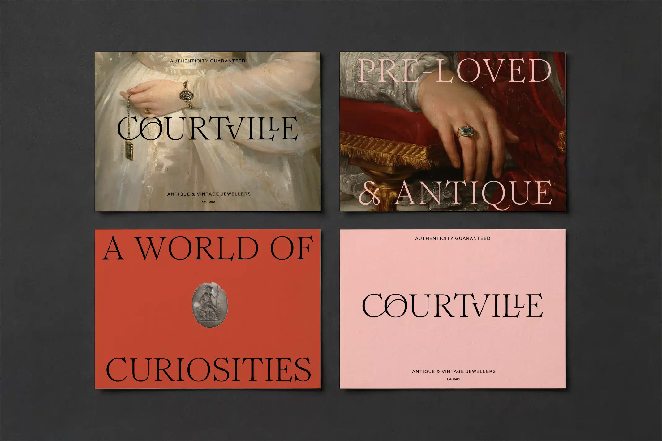Courtville brings a youthful and contemporary perspective to the ancient trade of jewellery dealing, and felt the time was right for a full company rebrand. The new identity needed to reflect the expectations of a high-end clientele while celebrating the eclectic and distinctive pieces of jewellery the company is known for. The client wanted the identity to mix the old with the new, touching upon the idea of ‘The Grand Tour’, a travel phenomenon popular amongst young aristocracy in the 18th century, who were wanting to discover the cultural wonders of Europe, it’s art, antiquities and architecture. Often bringing back souvenirs to commemorate their trip.