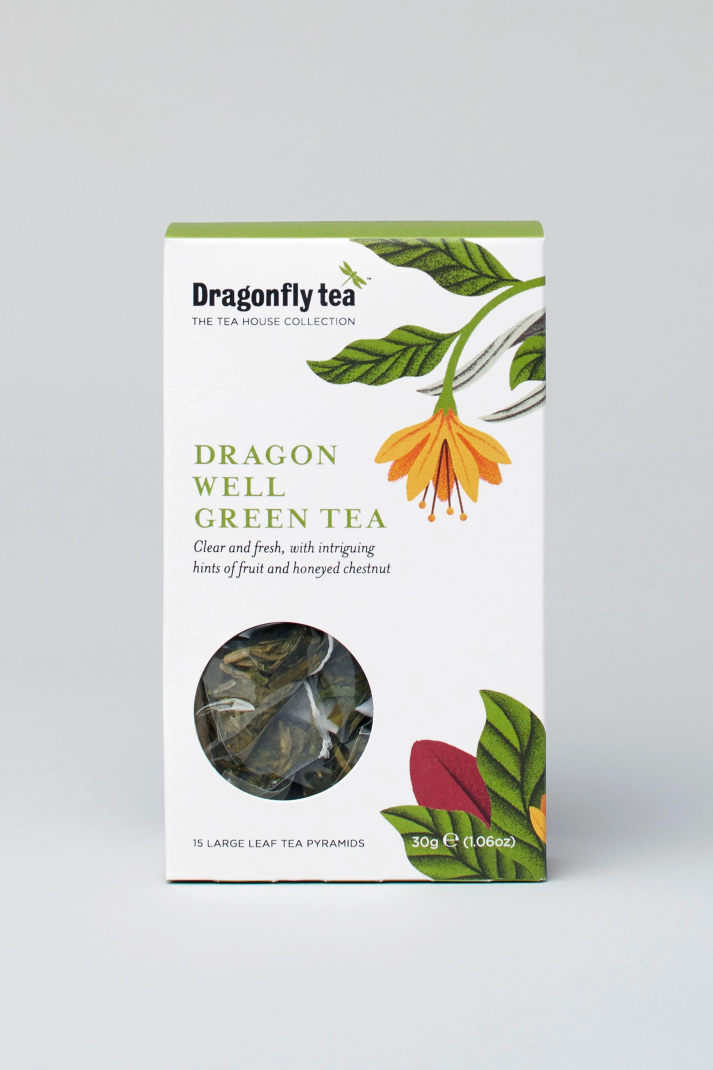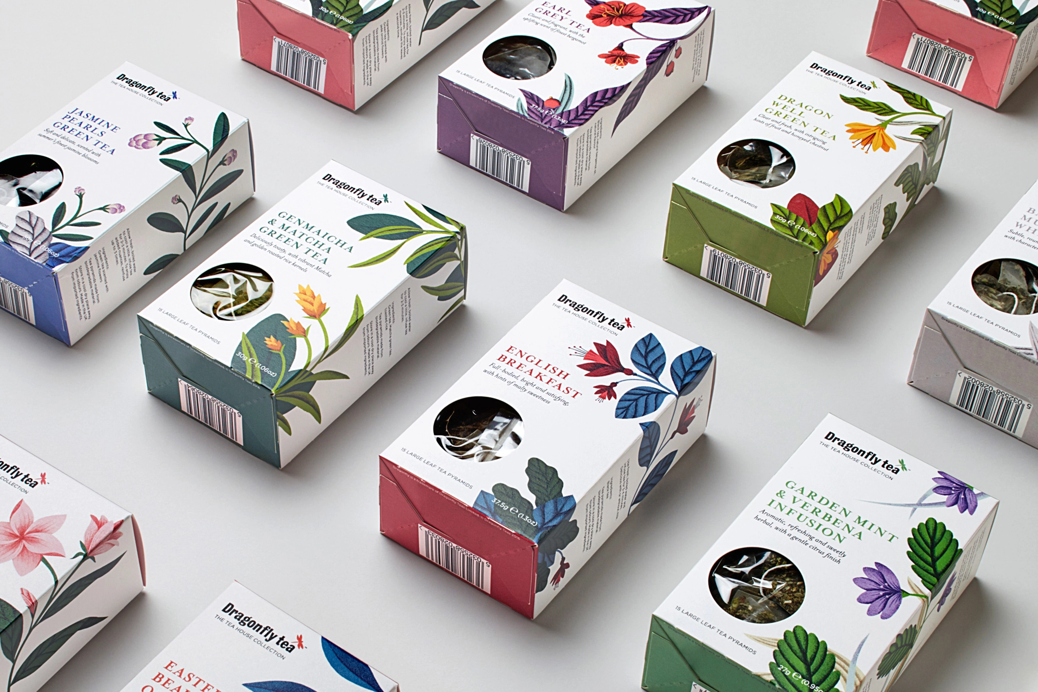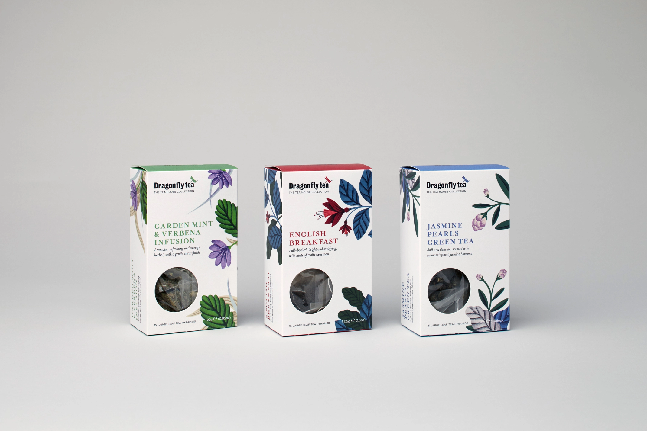 Dragonfly Tea are a family-owned, British company with a hundred year heritage of sourcing, growing and making the very purest and finest of teas. For the new Tea House Collection we were asked to create the packaging for ten luxury teas, each boxed with 15 leaf pyramid tea bags.