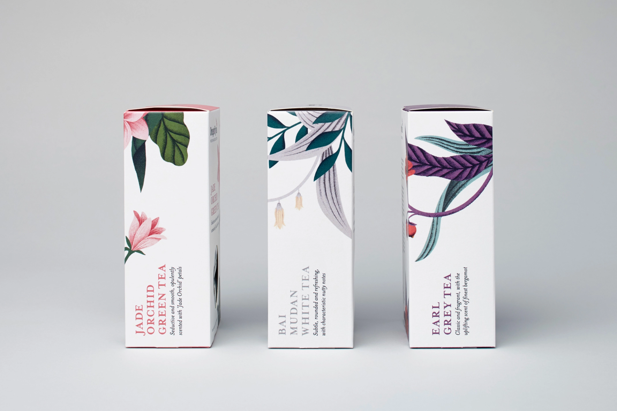 The new packaging needed to reflect the exotic locations the tea is sourced from and feel light and refreshing whilst still bold enough to stand out on shelf.