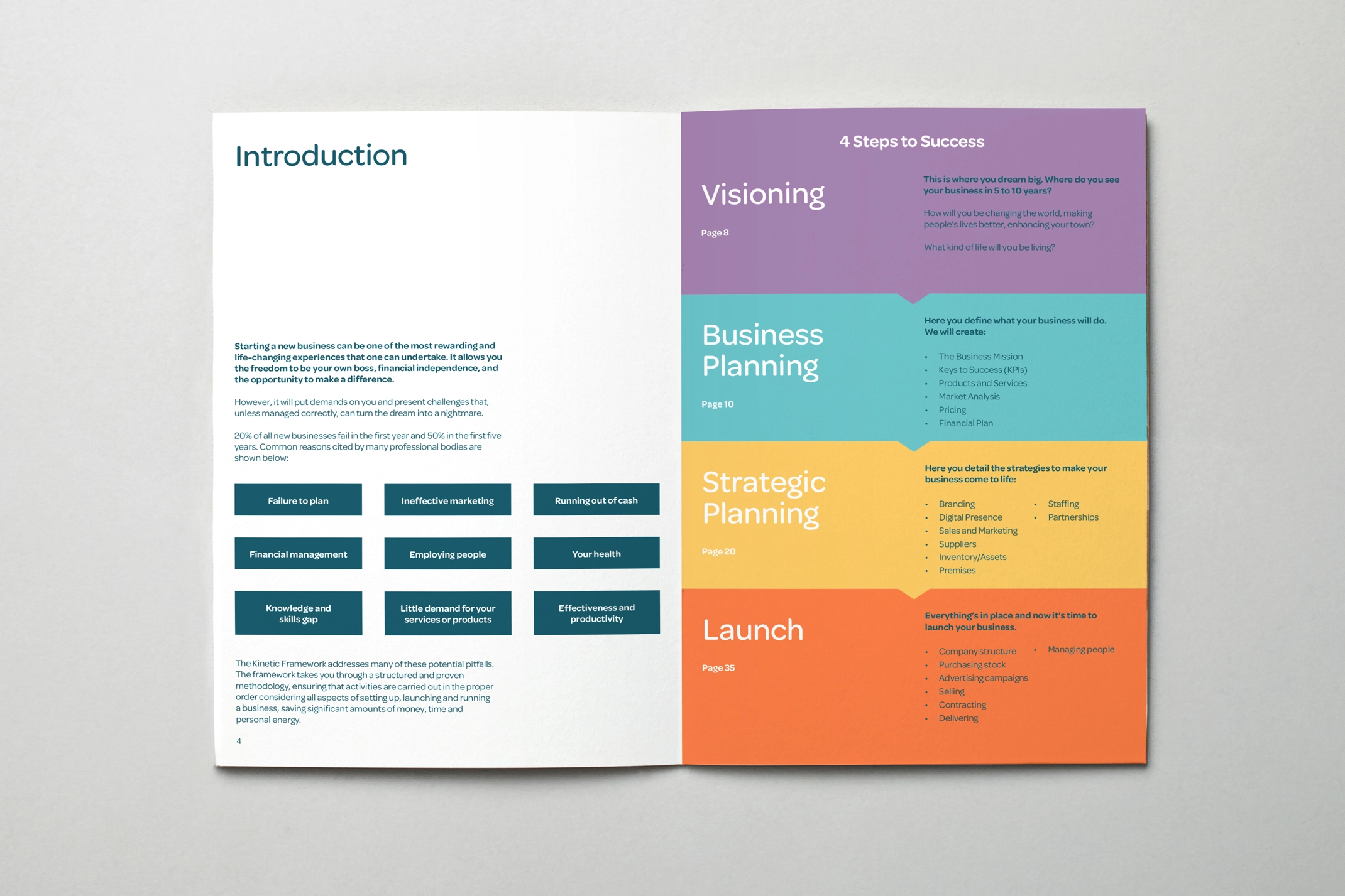 Providing advice, guidance and support to clients ranging from start-ups to established businesses, Eiger Business Coaching offers bespoke sessions tailored to improve business and operational performance. We were asked to develop the identity alongside the Kinetic Framework brochure, which takes businesses through from Vision to Launch.