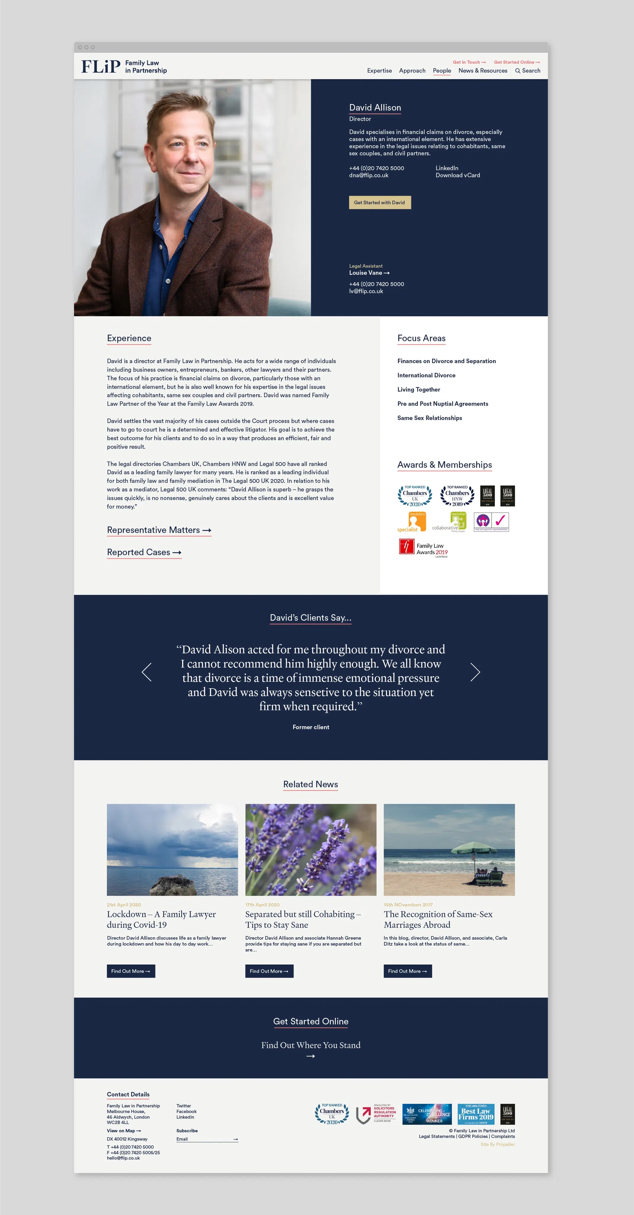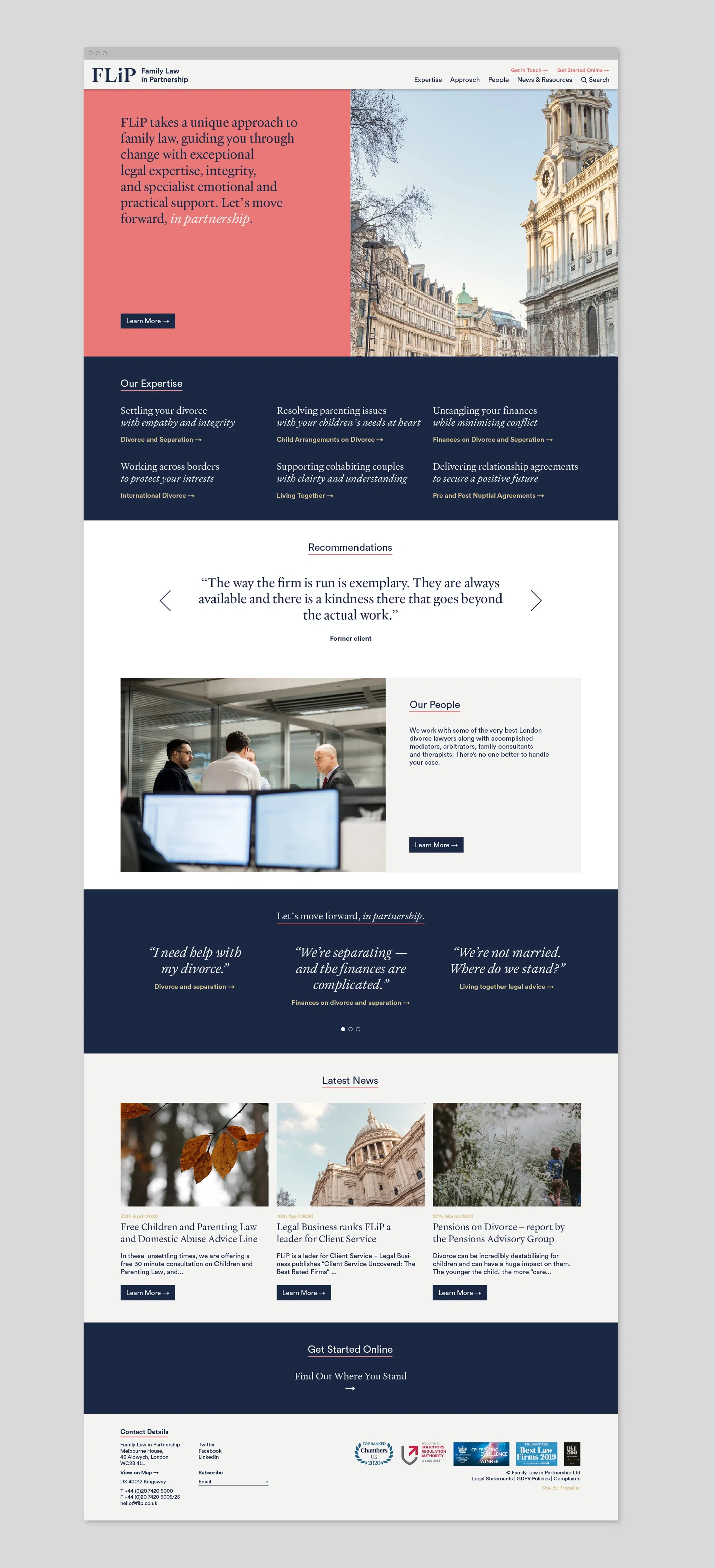 We were approached to create a new brand identity and website for the practice, and help develop their tone of voice to reflect their unique approach. We also commissioned a photographer to reshoot all their team portraits, and a further bank of location based imagery that could be used across their website and external communications.