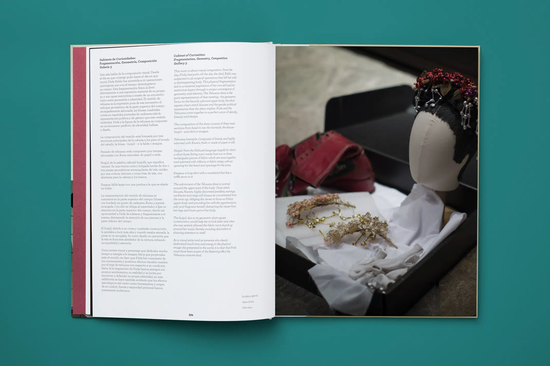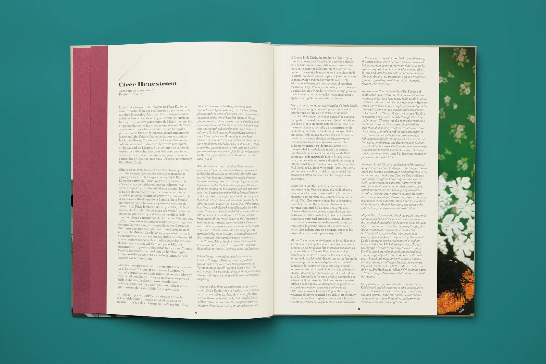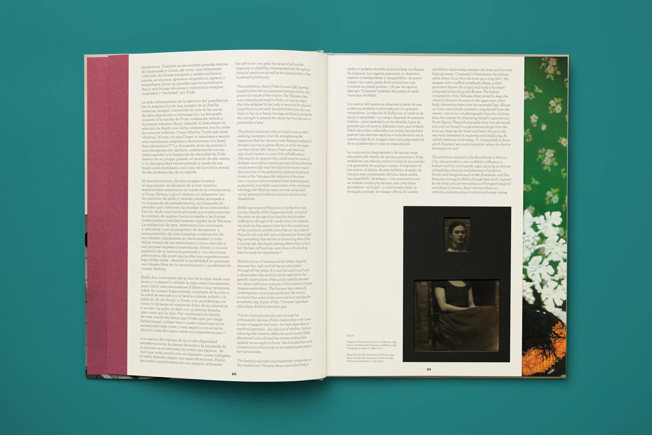 Appearances Can Be Deceiving: The Dresses of Frida Kahlo, the first exhibition to show objects discovered in 2004 including Frida Kahlo’s dresses and personal effects including her extraordinary plaster corsets and customised shoes. We designed dual language exhibition graphics (in English and Spanish) for the captions and information panels throughout the museum.