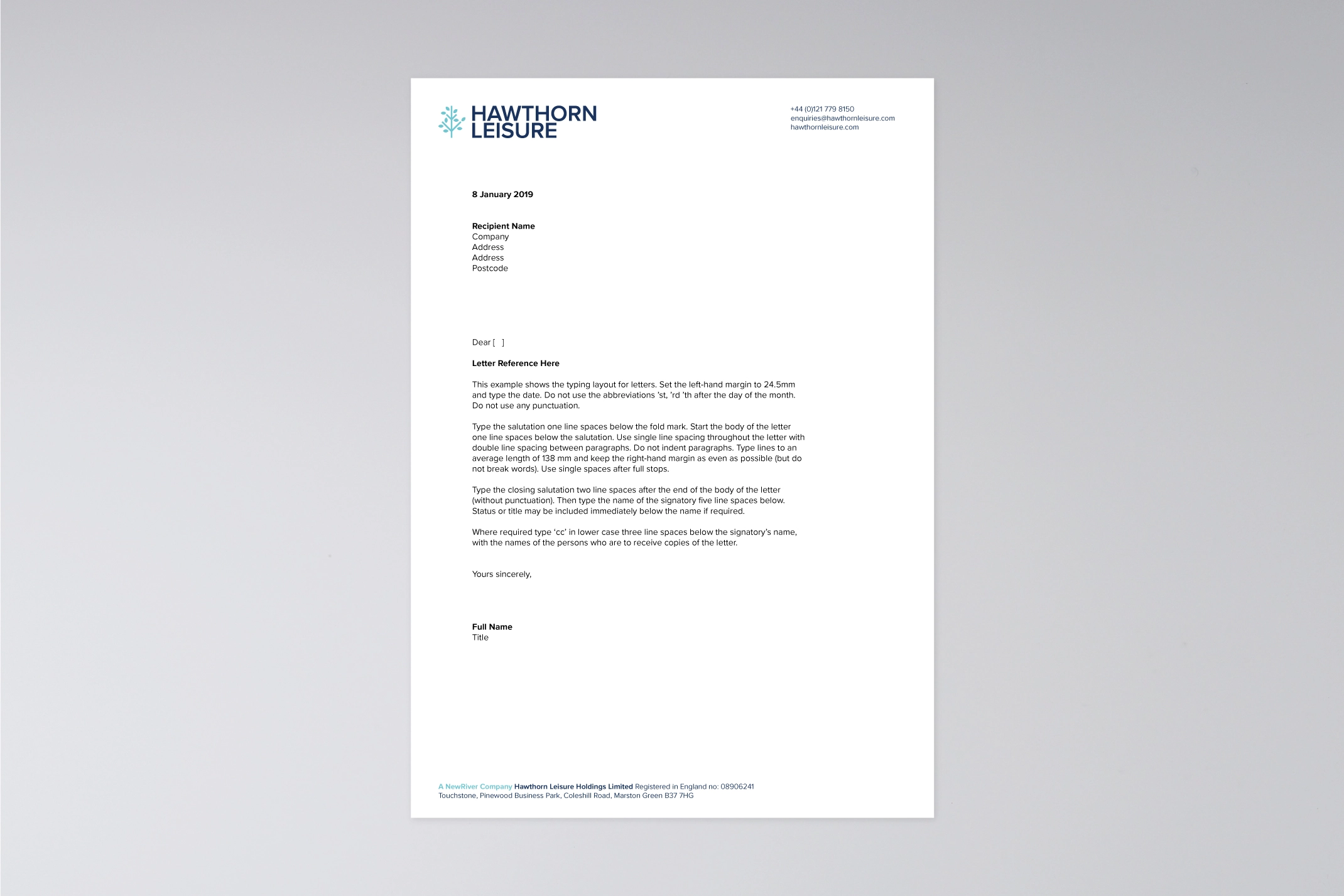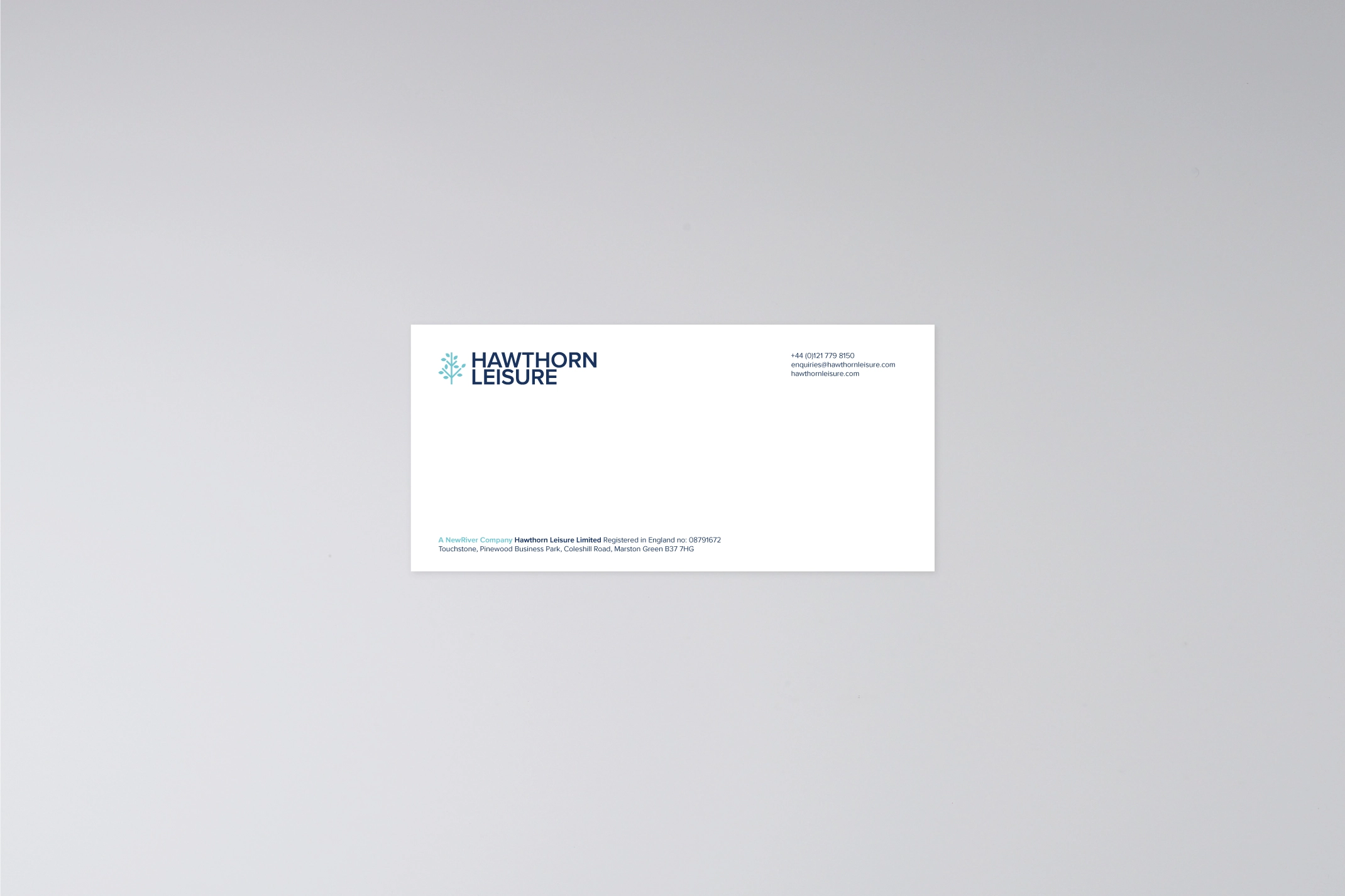 As part of the rebranding process we also developed the language and terminology Hawthorn Leisure used so that the values were better aligned between the two companies. For the visual identity we looked at the complete sliding scale of how to merge the two brands. We settled on a unique monogram for Hawthorn Leisure, keeping all other elements of the visual identity the same as NewRiver’s.
