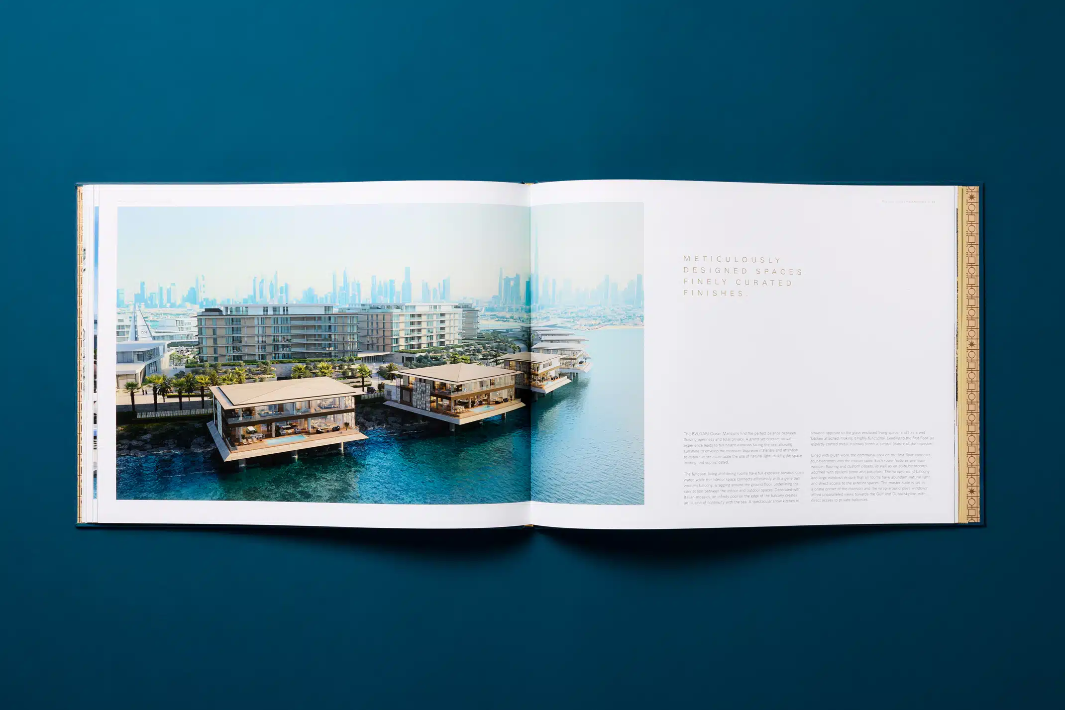 We were approached by Meraas to design and produce a luxurious coffee table book celebrating the BVLGARI Ocean Mansions. Situated at the end of the Jumeira Bay Island this collection of eight ultra-exclusive luxury homes offer the very best in living. As well as the book we crafted and commissioned a bespoke, hand-made clam shell case to present the book in, with an engraved name plate personalised for each new owner.