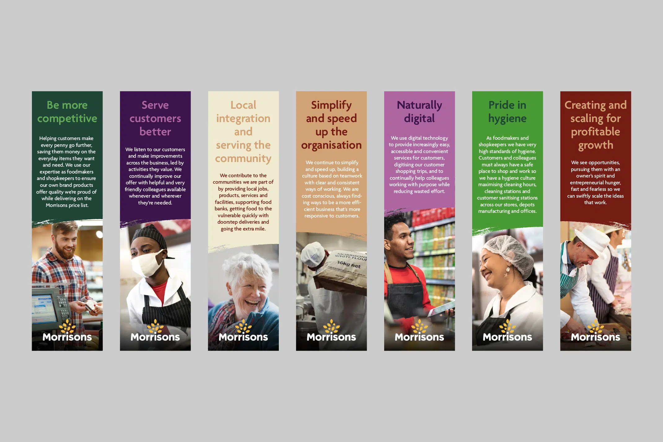 We worked in partnership with supermarket chain Morrisons to develop their current identity to make a more dynamic and uniform brand with added stretch.