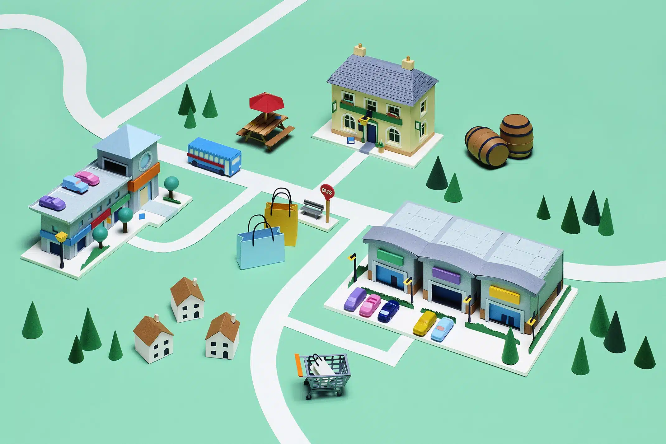 As part of this project we also commissioned paper artist Hattie Newman to create a 3D model of the UK which showcases NewRiver’s portfolio of shopping centres, retail parks and community pubs. The model was shot in multiple set ups to allow for different format uses and future portfolio growth.