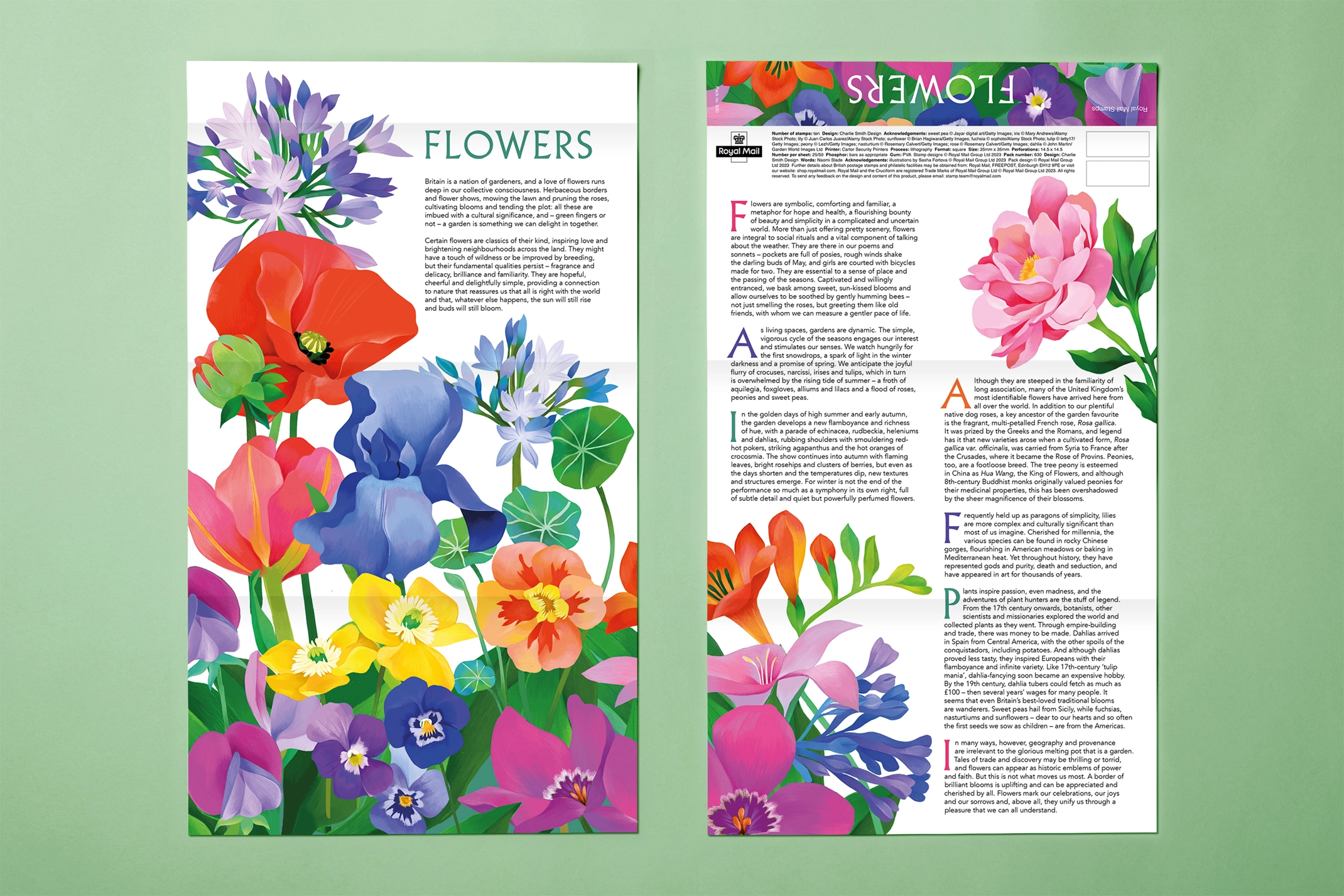Royal Mail asked us to design their new special stamps that celebrate some of the most popular flowers found in gardens all over Britain. Working with illustrators Sasha Fortova and Ellie Morris, we also designed the presentation pack, first day envelope, filler card and hand stamps.