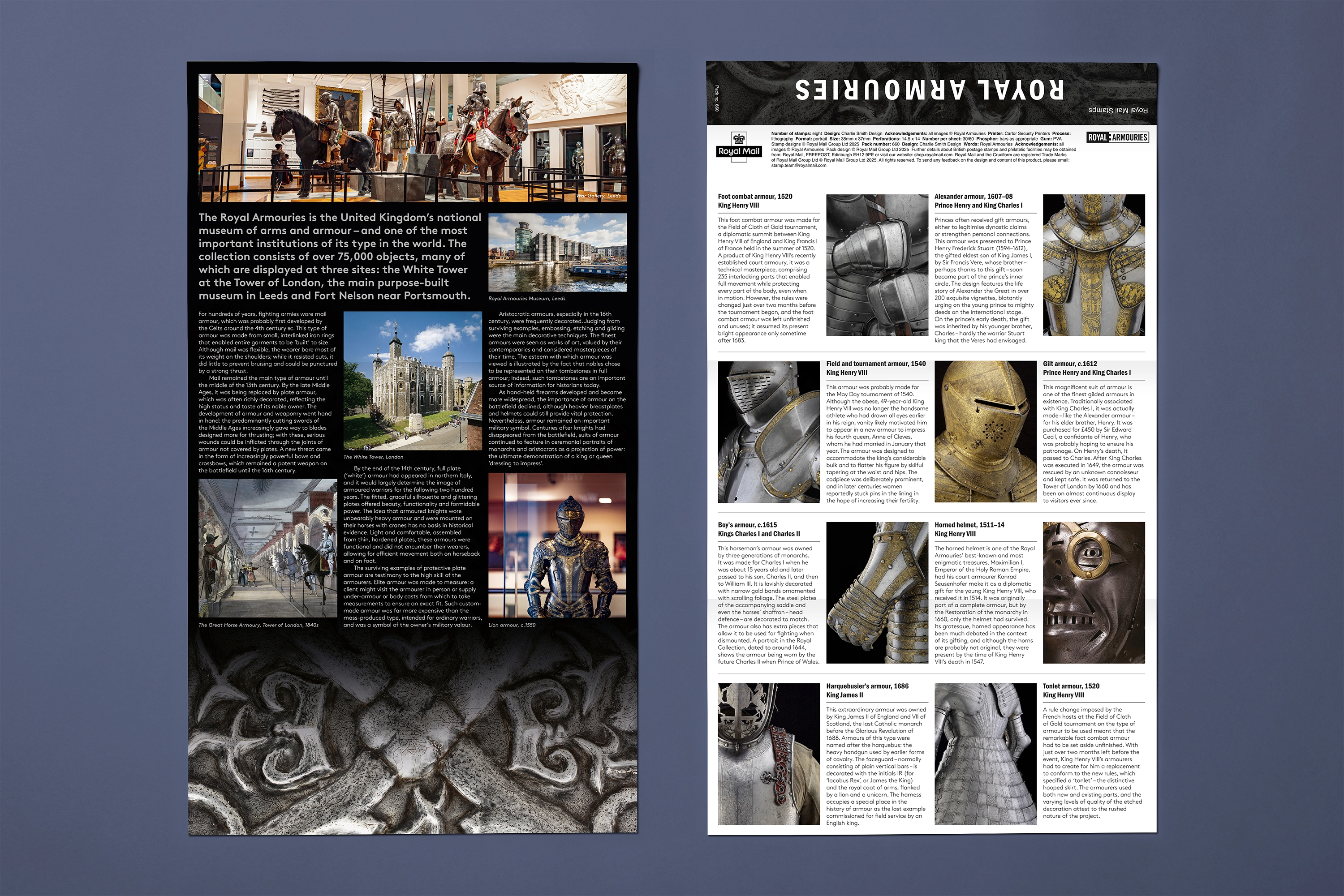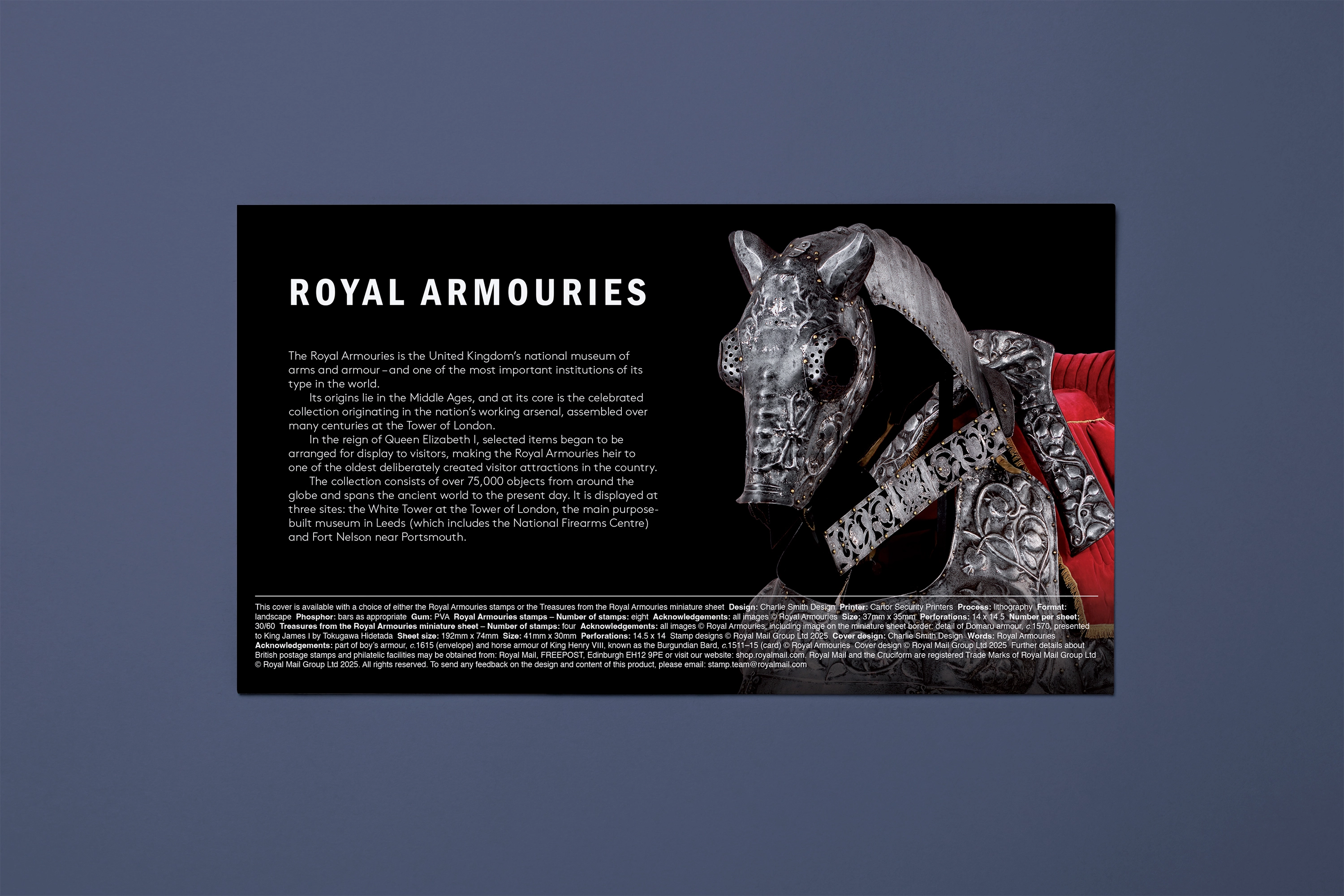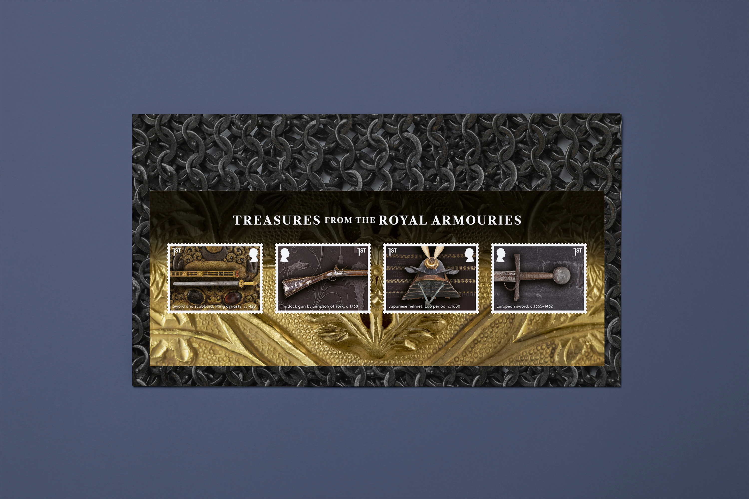 The latest set of special issue stamps celebrating the remarkable collection of the Royal Armouries – the custodians of the UK’s national collection of armour. The stamps showcase the stunning historical objects assembled over many centuries, with the main stamps featuring photographs of armour worn by Kings. The miniature sheet stamps feature images of other treasures from the Royal Armouries.