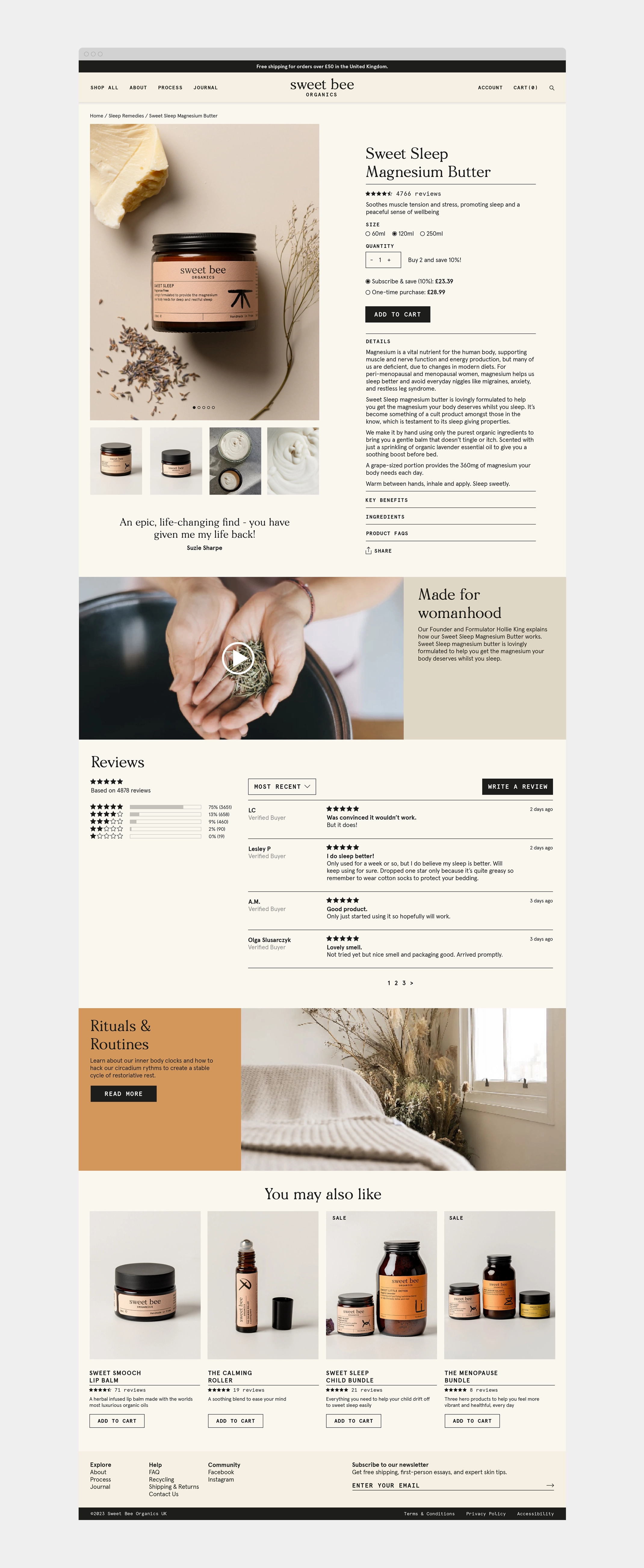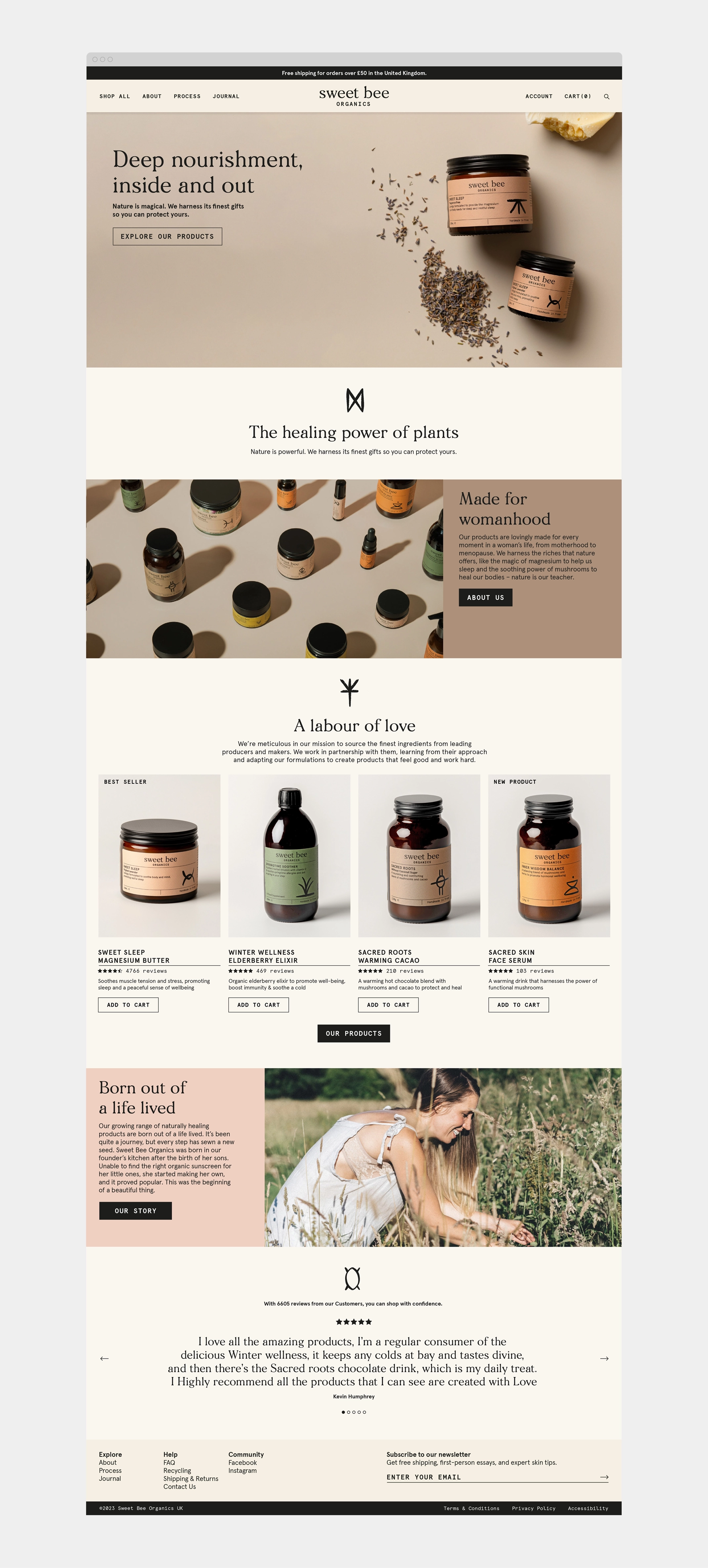 Collaborating closely with copywriter Kendra Futcher we kicked off the project with an in-depth workshop to get to the heart of Sweet Bee Organics, their customer and the market landscape.