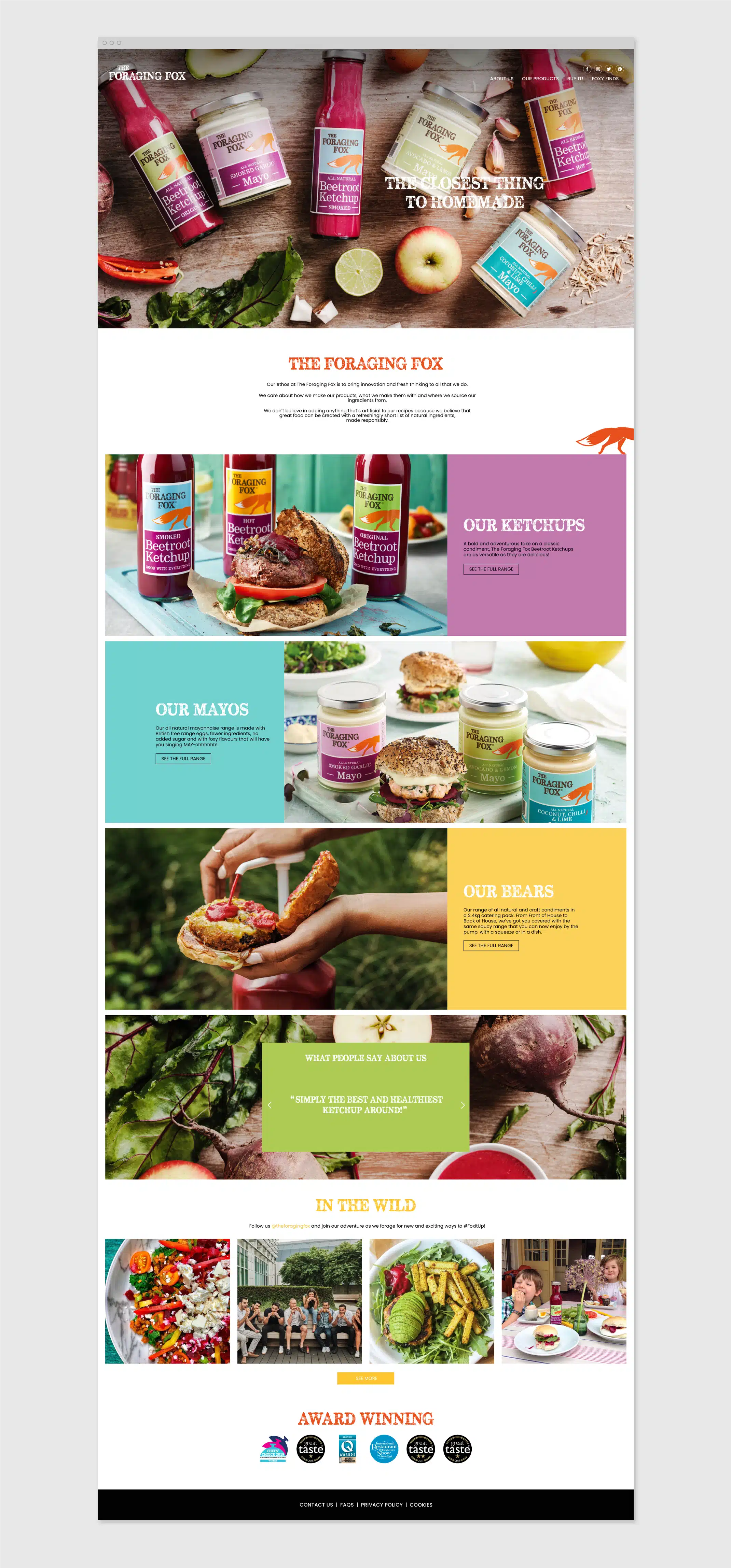 The Foraging Fox produce award winning, all natural condiments which are low in sugar, non GMO and in the case of the beetroot ketchup, vegan. We were approached to redesign their website, whilst retaining the core of their existing identity. We commissioned photographic duo Haraala Hamilton to capture not only their condiment range, but also ingredients which make them, in doing so championing their field to fork mentality.